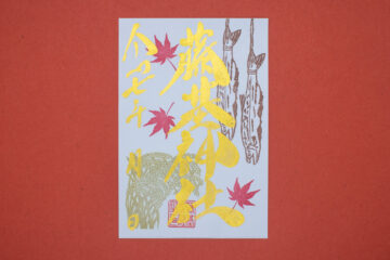 金の墨汁で「藤基神社」と日付を一枚一枚手書きで奉製し、
